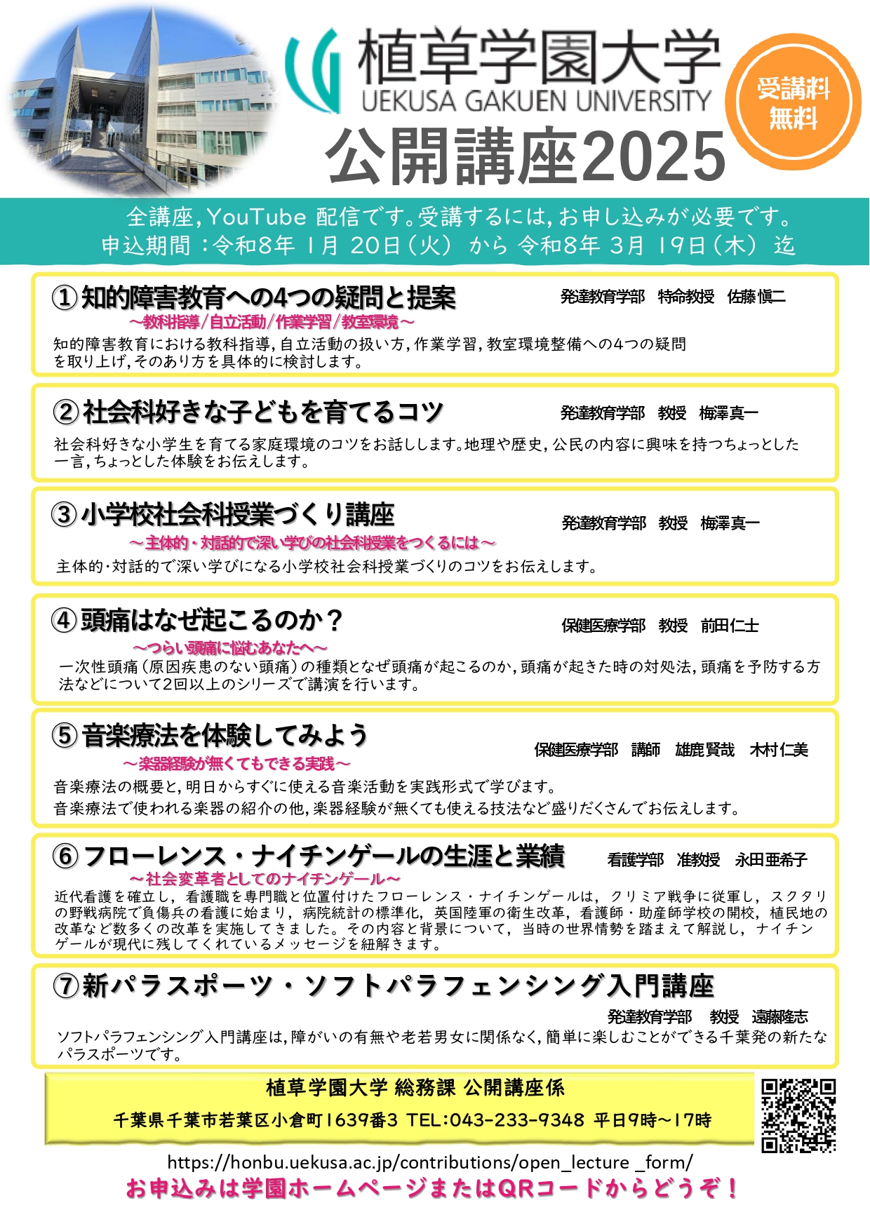 お申し込みいただく講座にチェックし、必要事項をご入力のうえ送信してください。