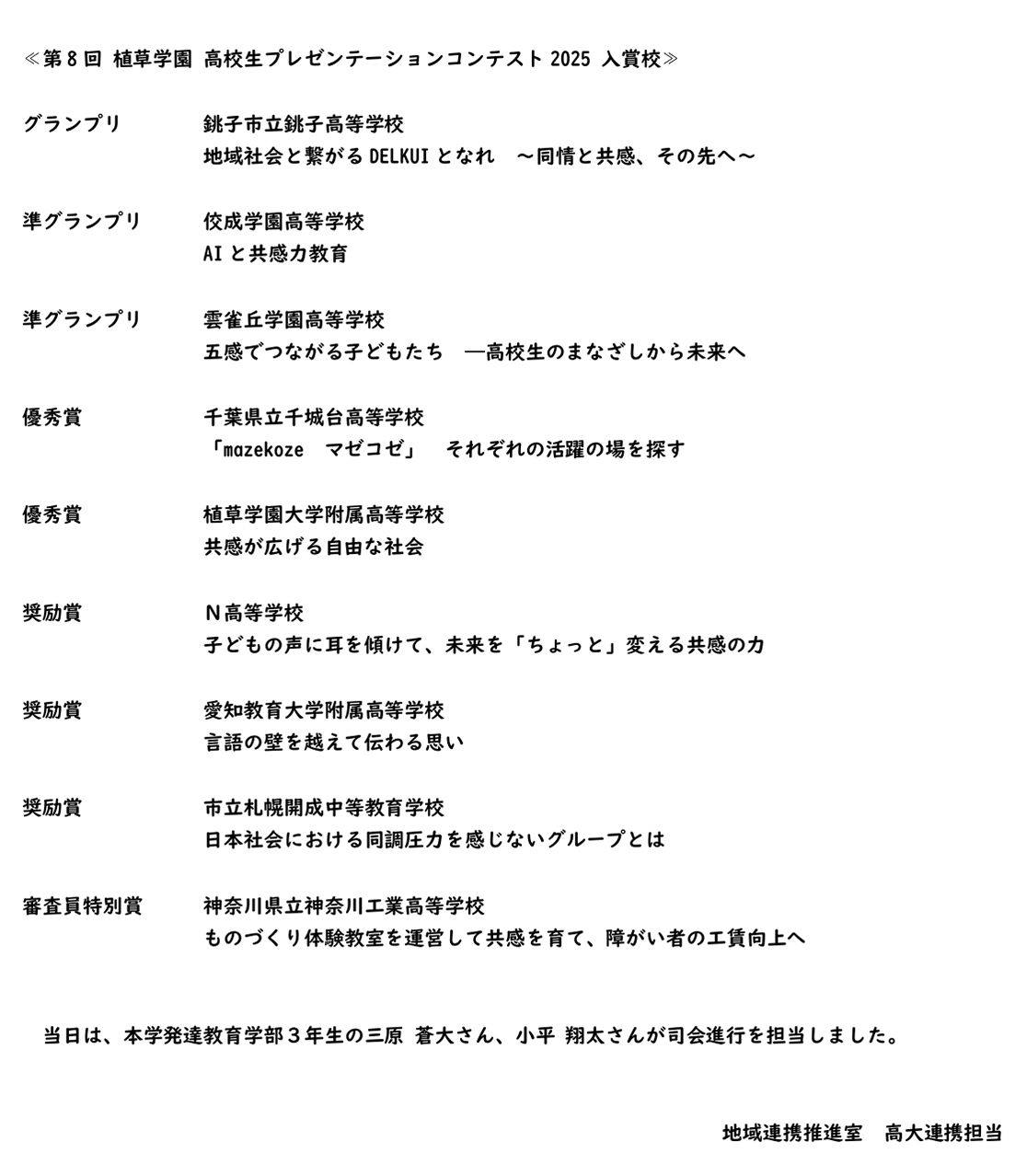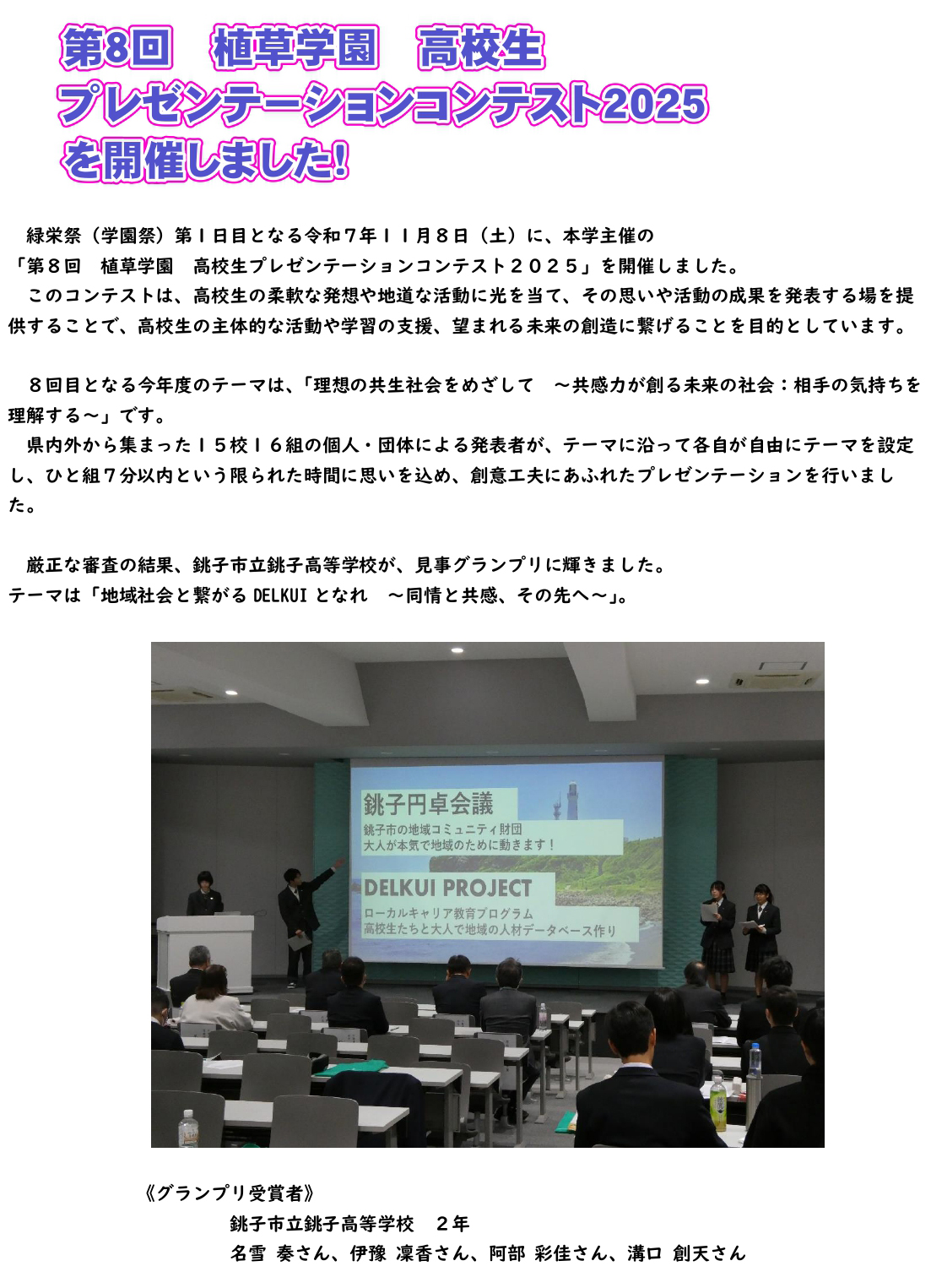 第8回 植草学園 高校生プレゼンテーションコンテスト2025を開催しました!